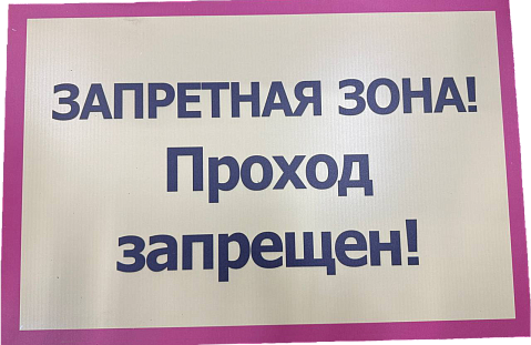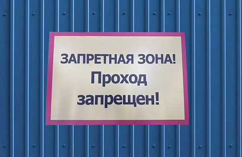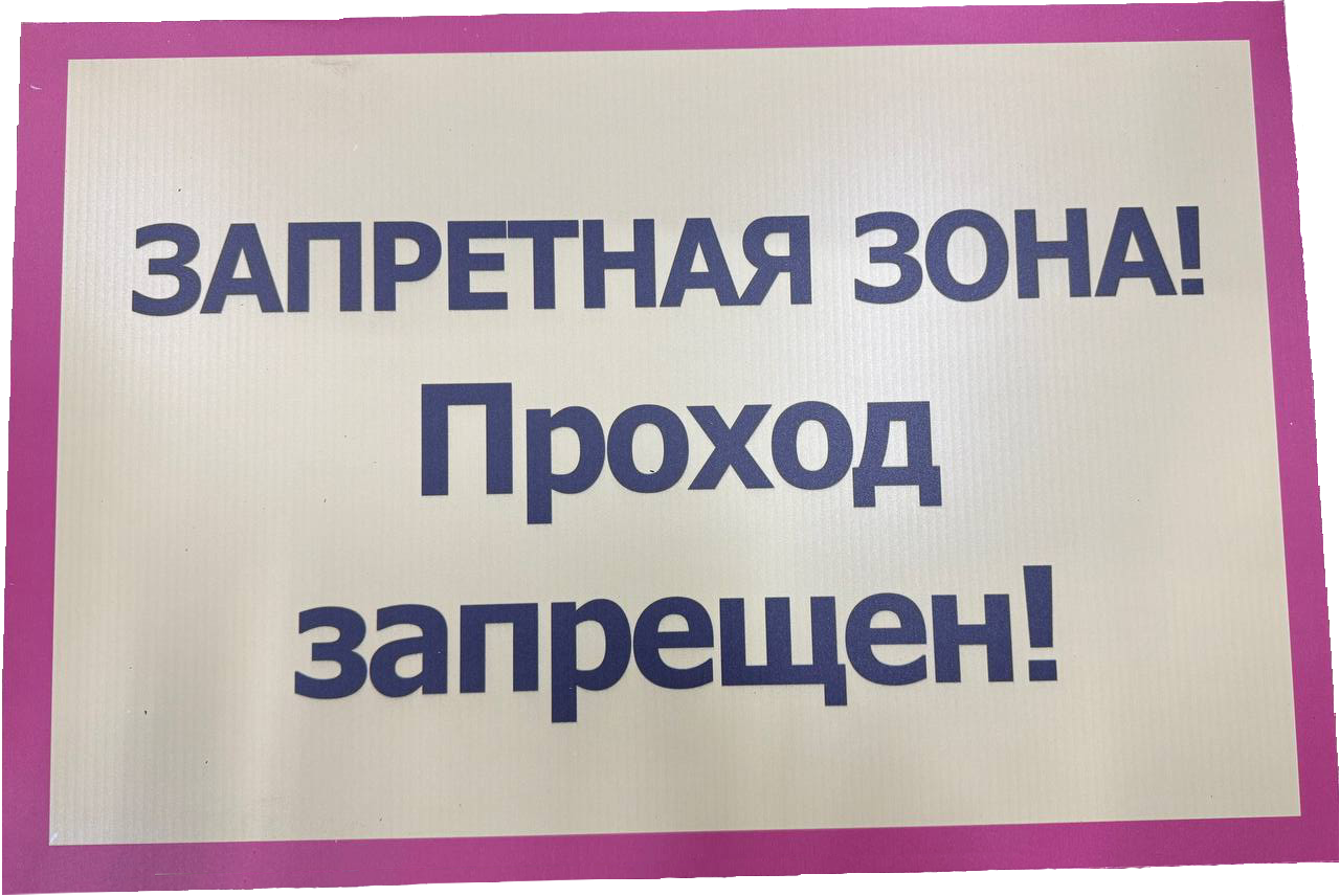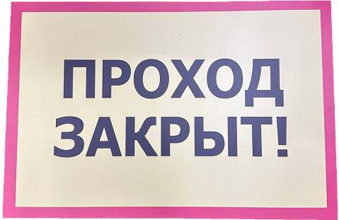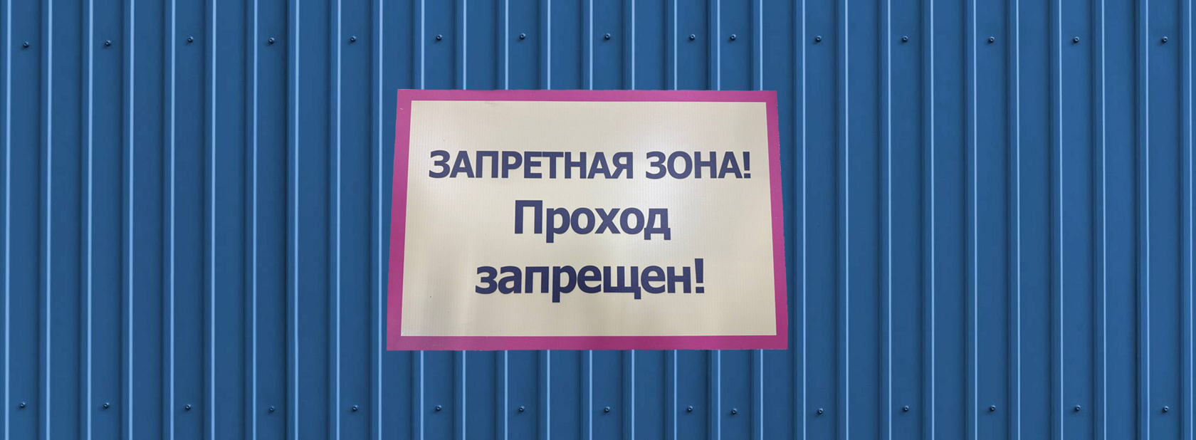 - Запрещающие: «Не курить», «Проход запрещён», «Не включать: работают люди», «Запрещено пользоваться открытым огнём».